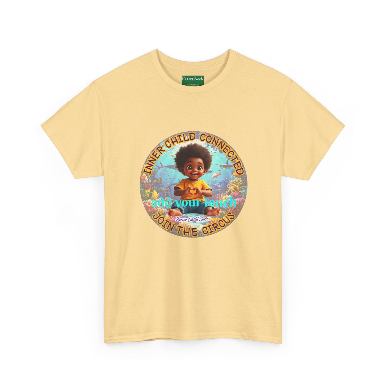 Especially boys of all ages of African decent. This cotton tee is an invitation to all who feel that its time to reunite with our inner innocence and wisdom and grow into a united people around the globe. The artwork — a child figure surrounded by a line of text — states the connection with our inner child and bring tenderness, innocence and wisdom into the world. The artwork can be personalized by adding your name or a few words to make it your unique expression. Just add it at Checkout into "add additional note" box or personalize directly via the button. Else we leave that space on the product empty.