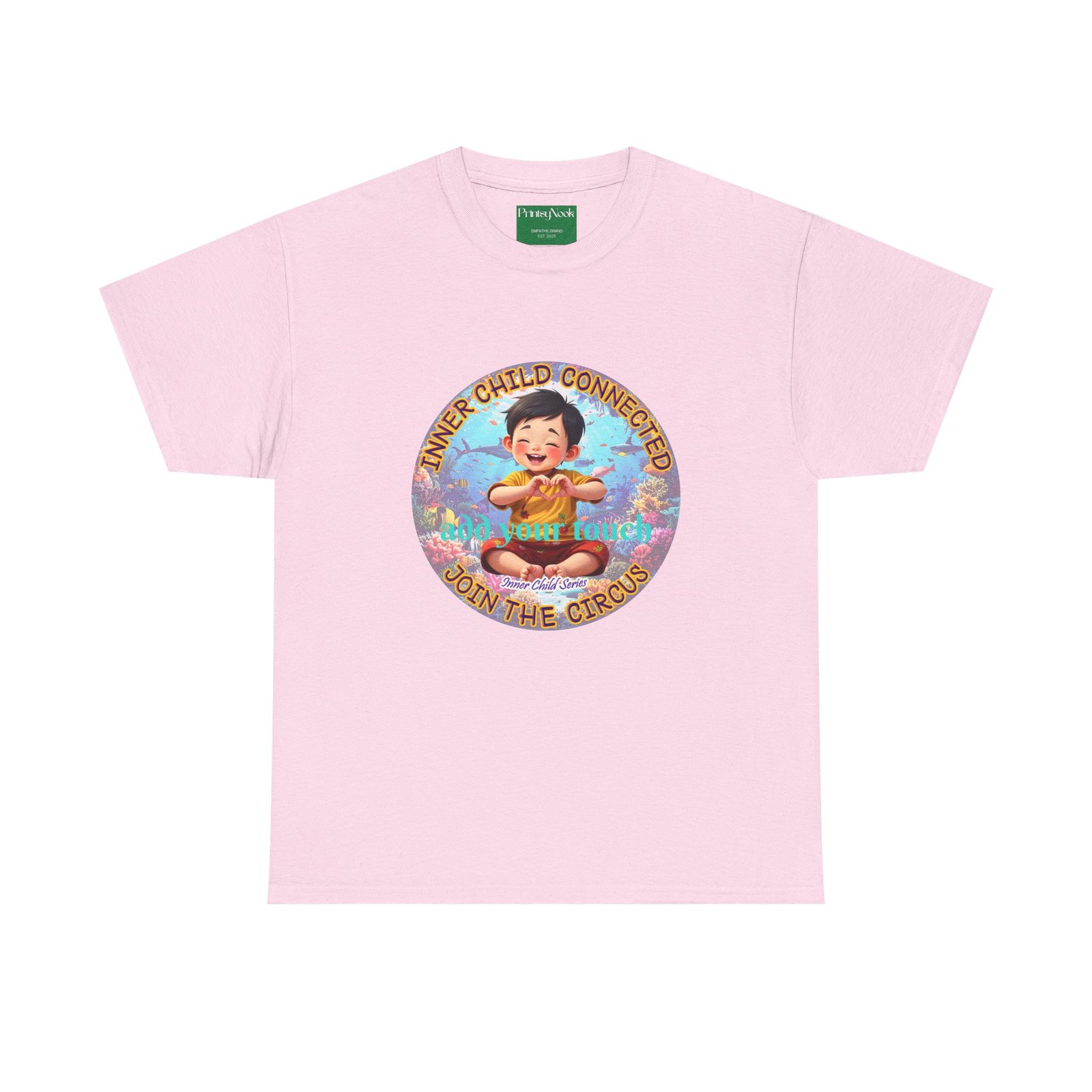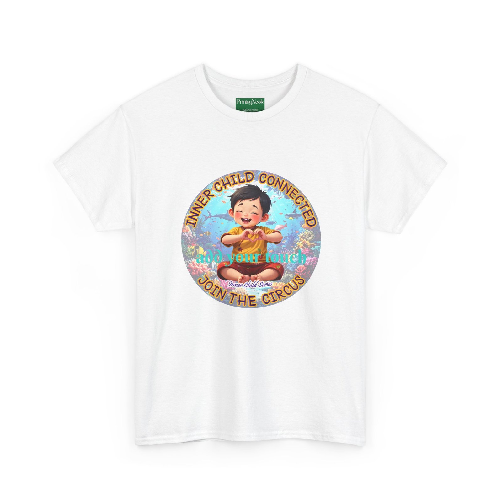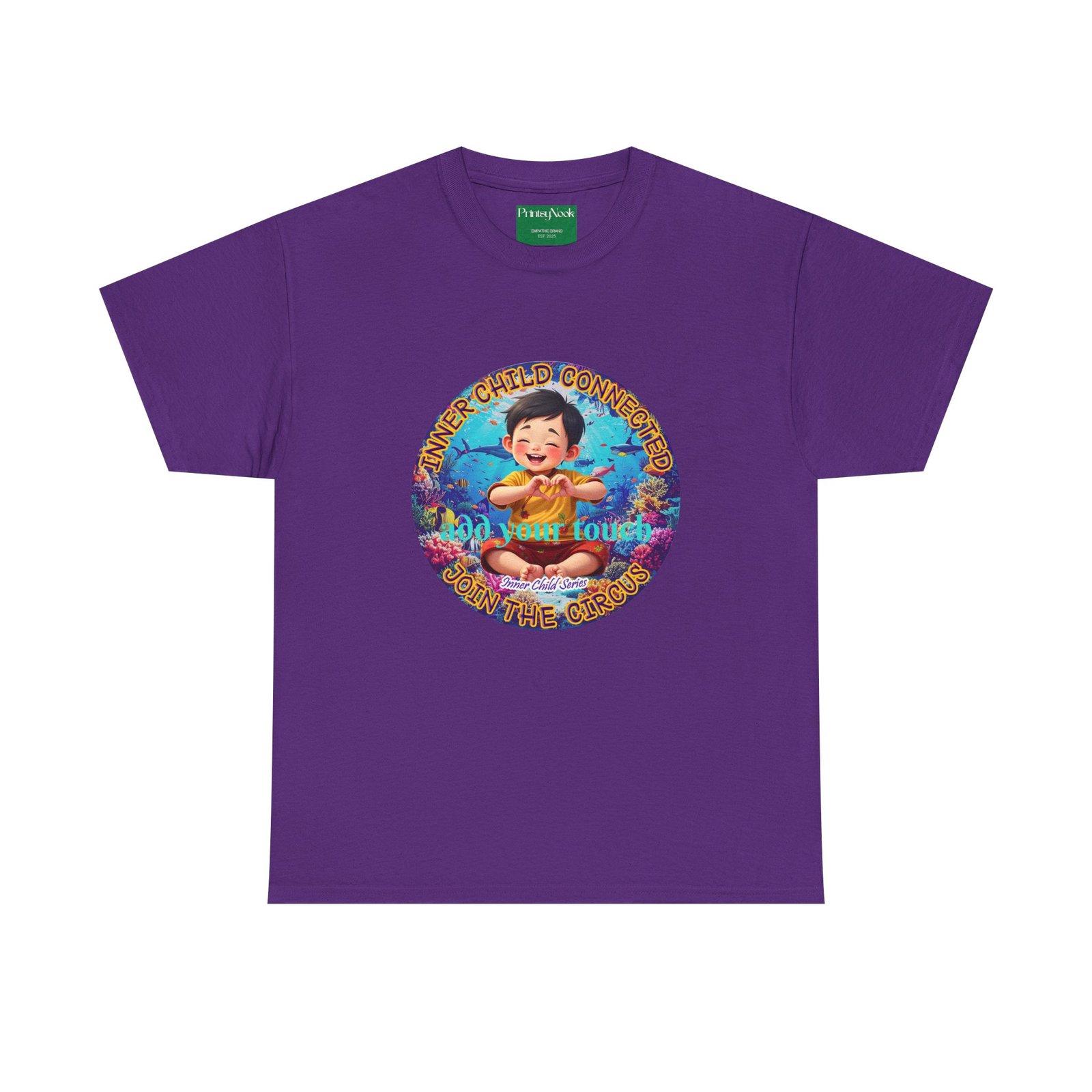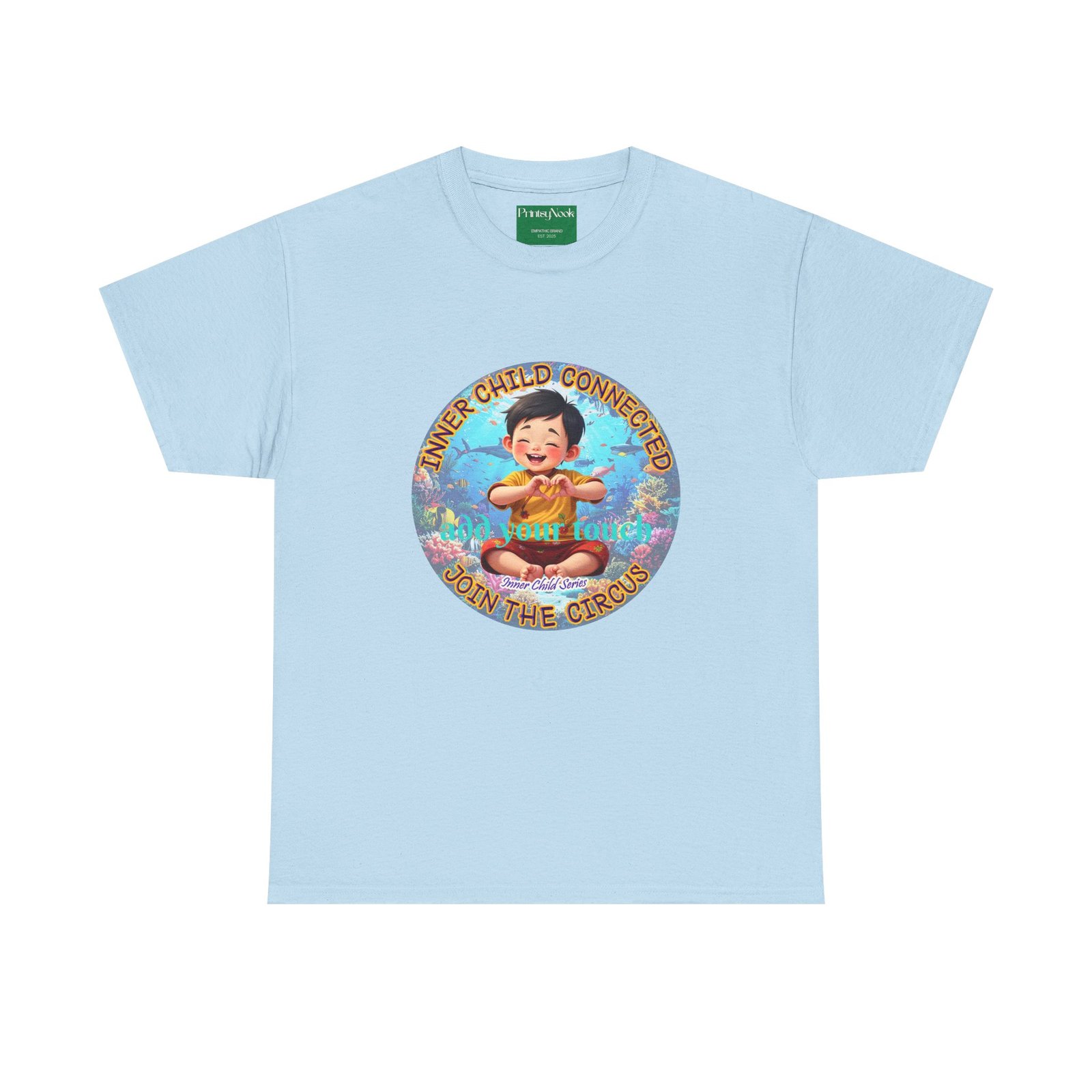 Especially for boys of all ages of Asian decent. This cotton tee is an invitation to all who feel that its time to reunite with our inner innocence and wisdom and grow into a united people around the globe. The artwork — a child figure surrounded by a line of text — states the connection with our Inner child and bring tenderness, innocence and wisdom into the world. The artwork can be personalized by adding your name or a few words to make it your unique expression. Just add it at Checkout into "add additional note" box. Else we leave that space on the product empty.
