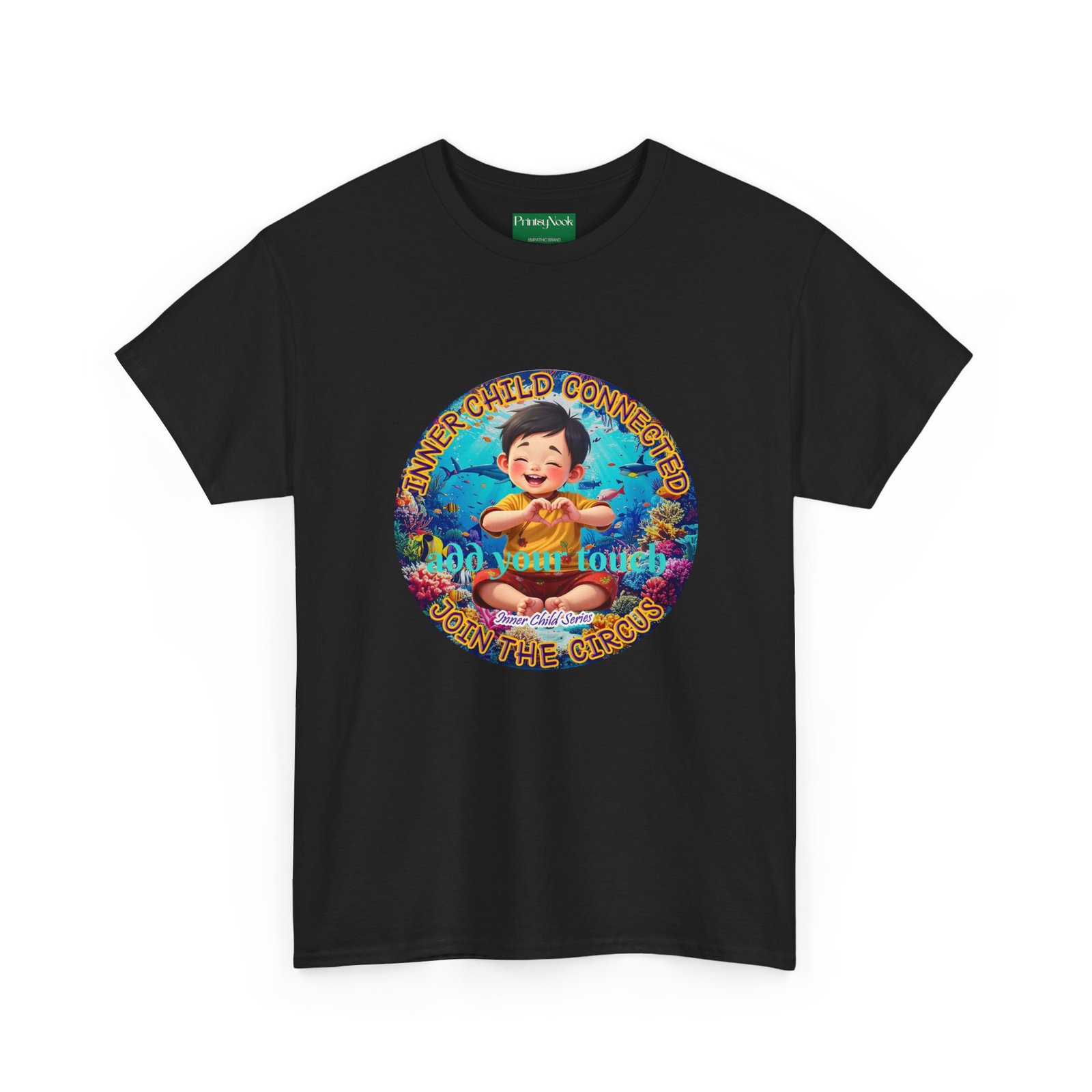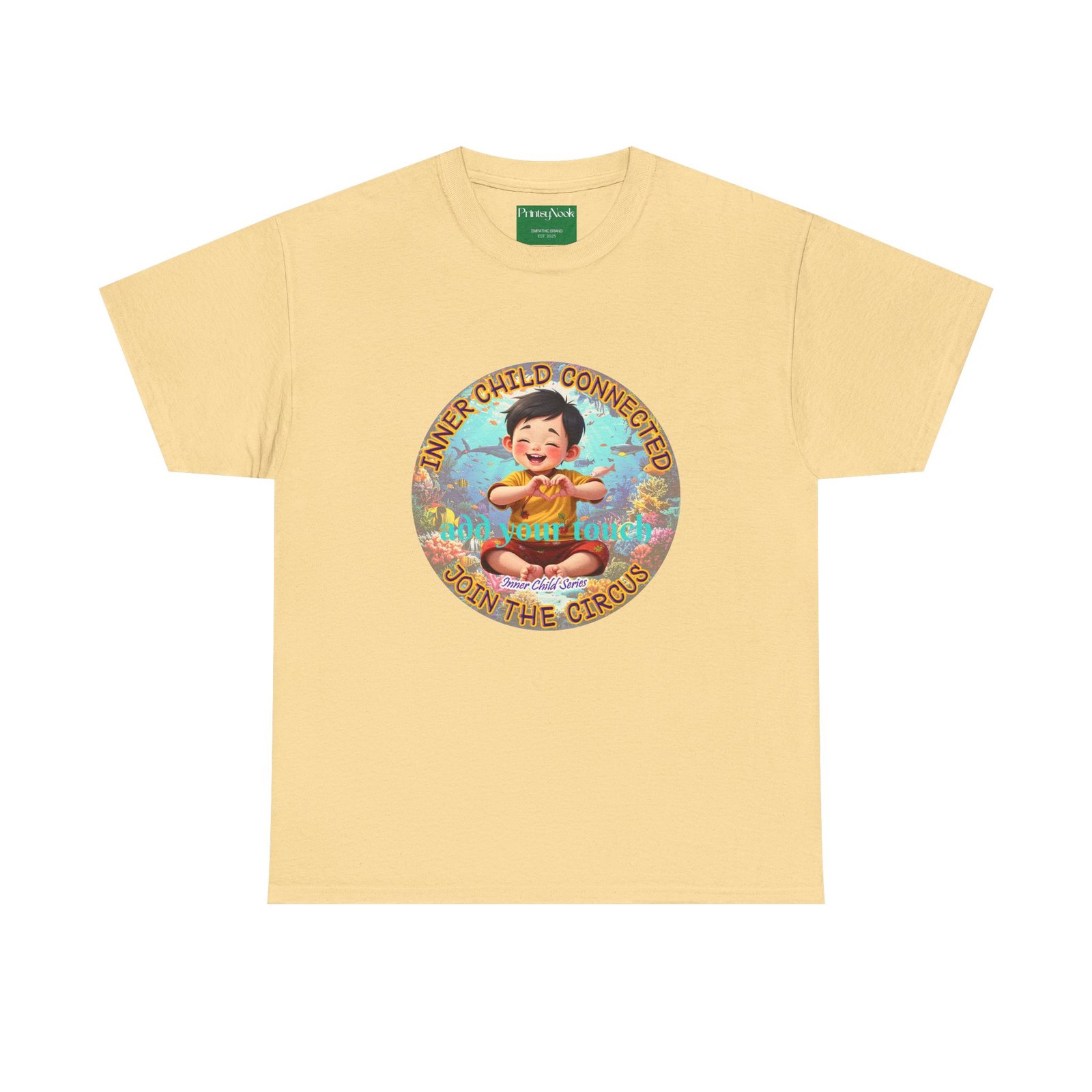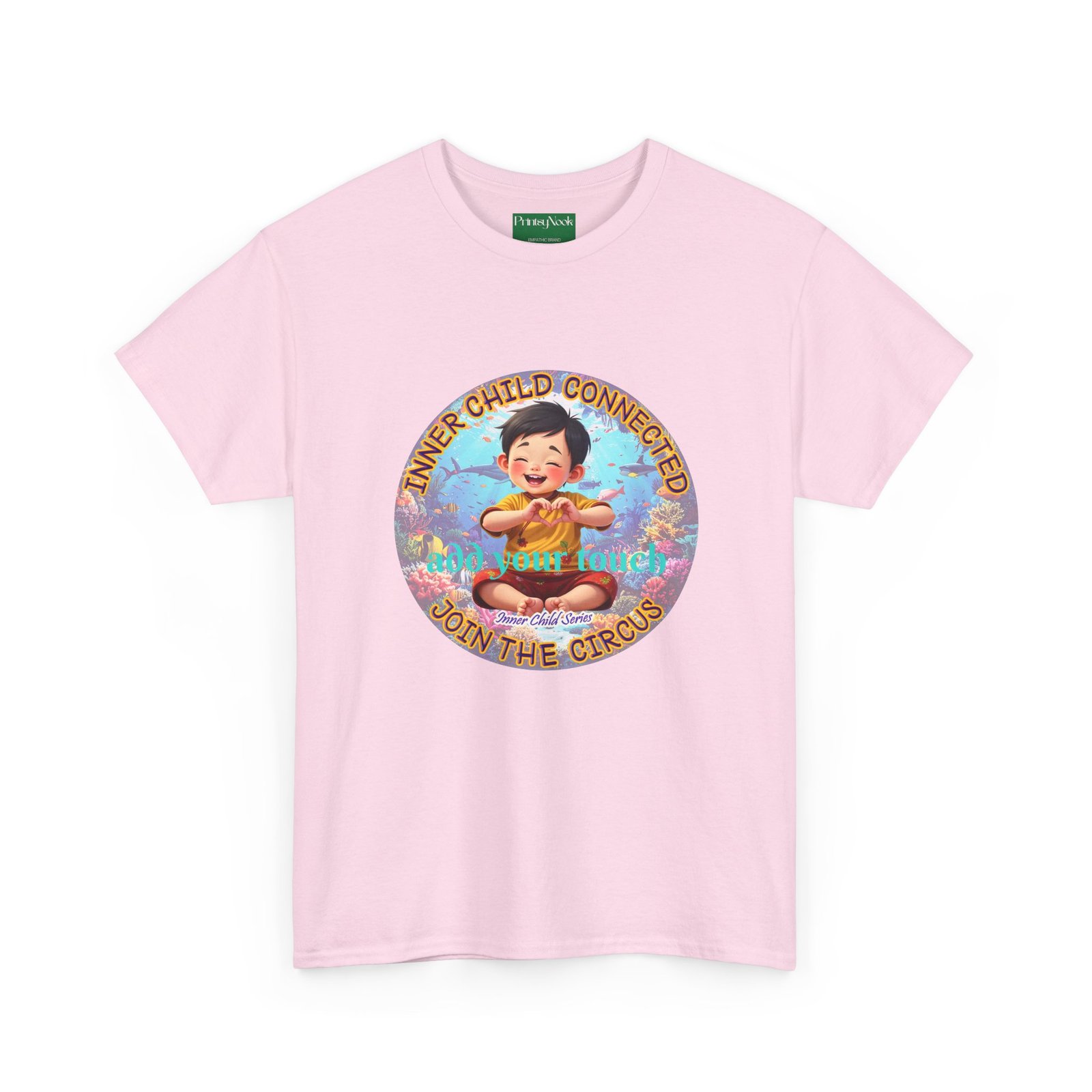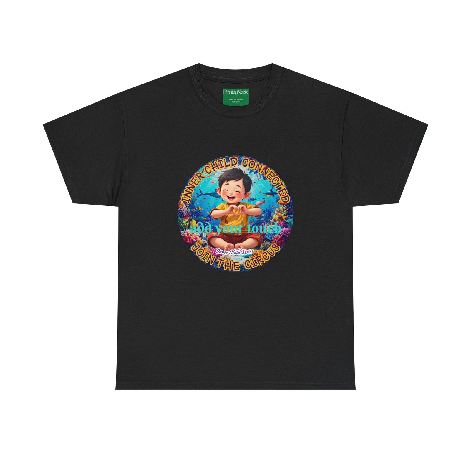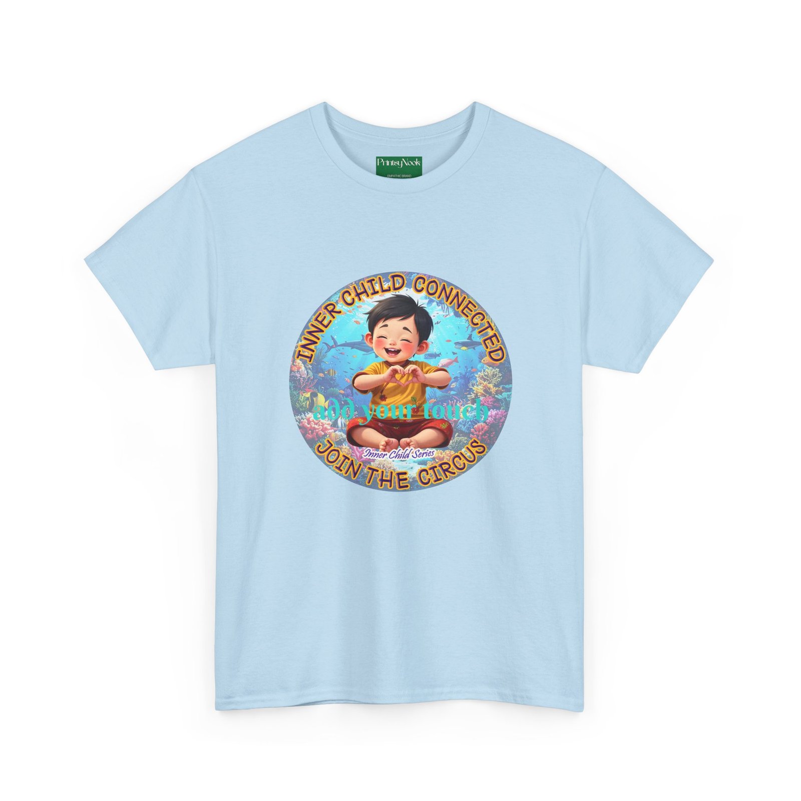 Especially for boys of all ages of Asian decent. This cotton tee is an invitation to all who feel that its time to reunite with our inner innocence and wisdom and grow into a united people around the globe. The artwork — a child figure surrounded by a line of text — states the connection with our Inner child and bring tenderness, innocence and wisdom into the world. The artwork can be personalized by adding your name or a few words to make it your unique expression. Just add it at Checkout into "add additional note" box. Else we leave that space on the product empty.
