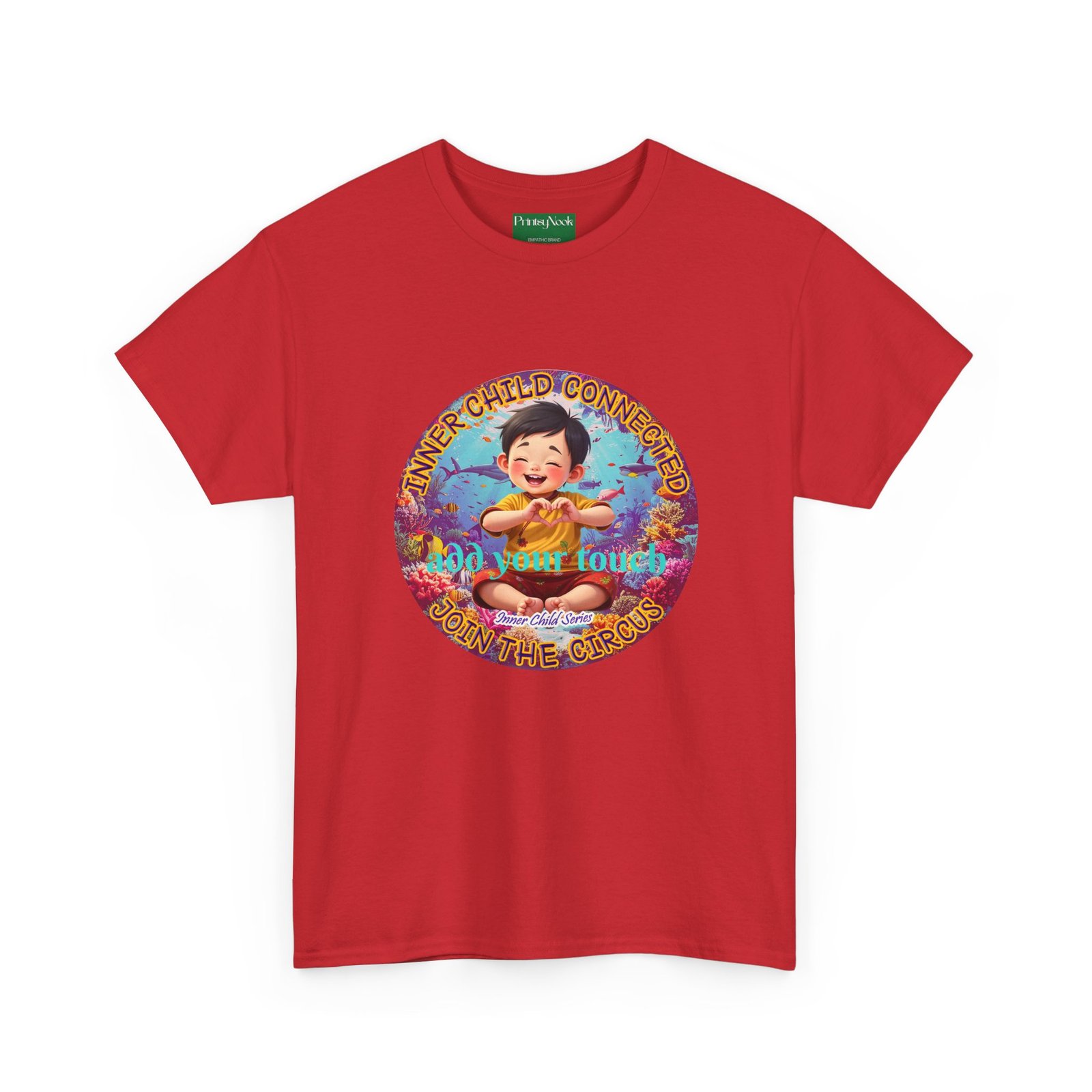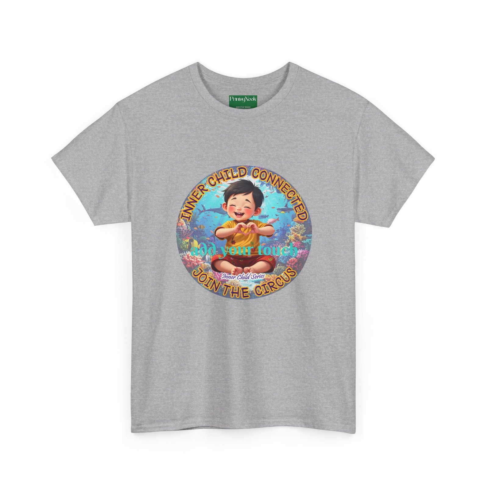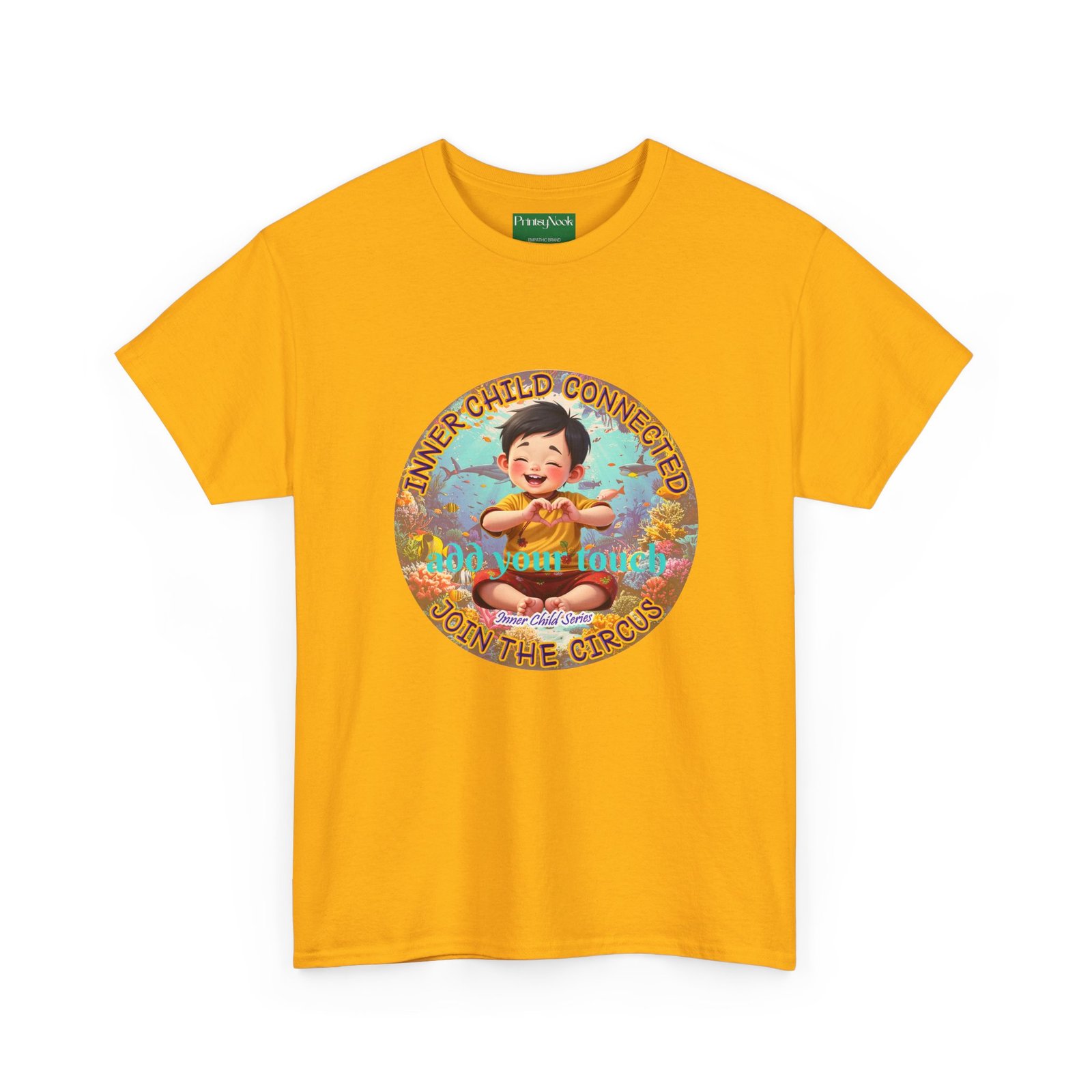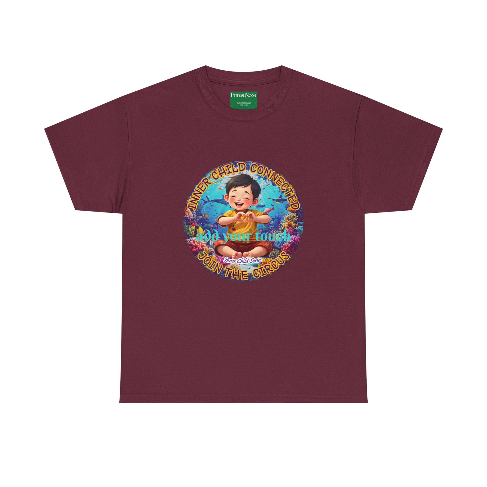 Especially for boys of all ages of Asian decent. This cotton tee is an invitation to all who feel that its time to reunite with our inner innocence and wisdom and grow into a united people around the globe. The artwork — a child figure surrounded by a line of text — states the connection with our Inner child and bring tenderness, innocence and wisdom into the world. The artwork can be personalized by adding your name or a few words to make it your unique expression. Just add it at Checkout into "add additional note" box. Else we leave that space on the product empty.