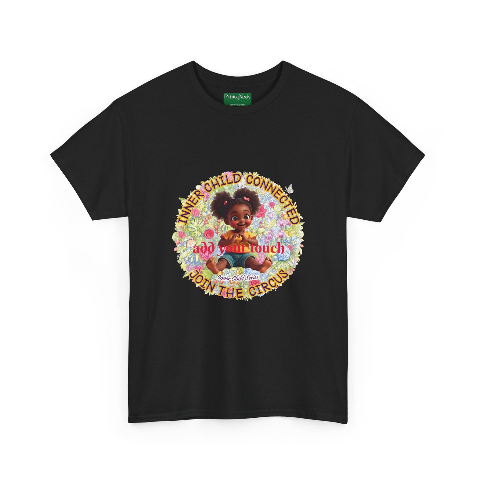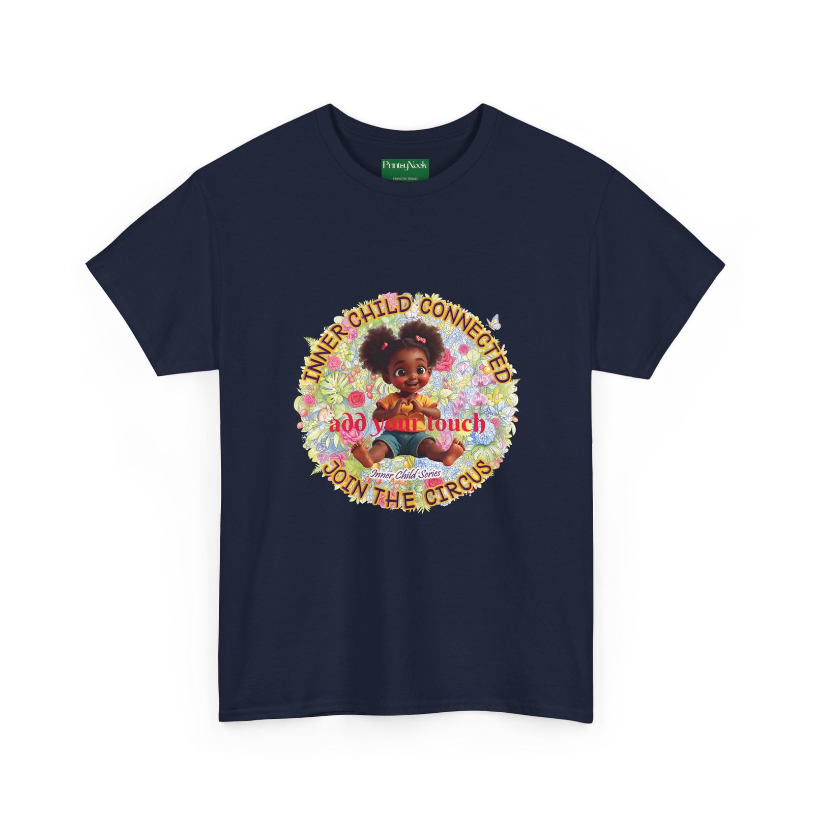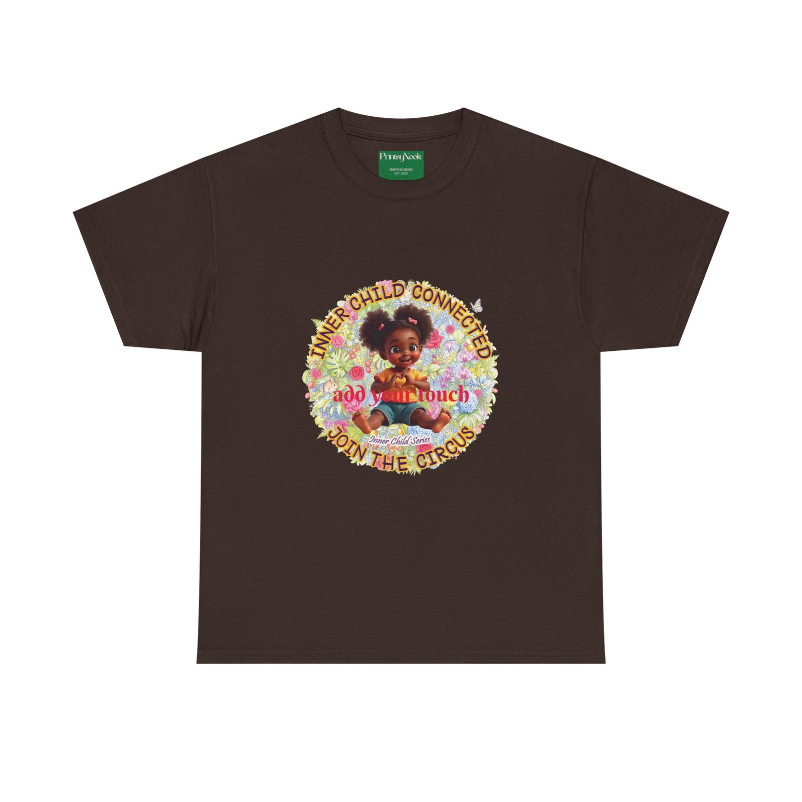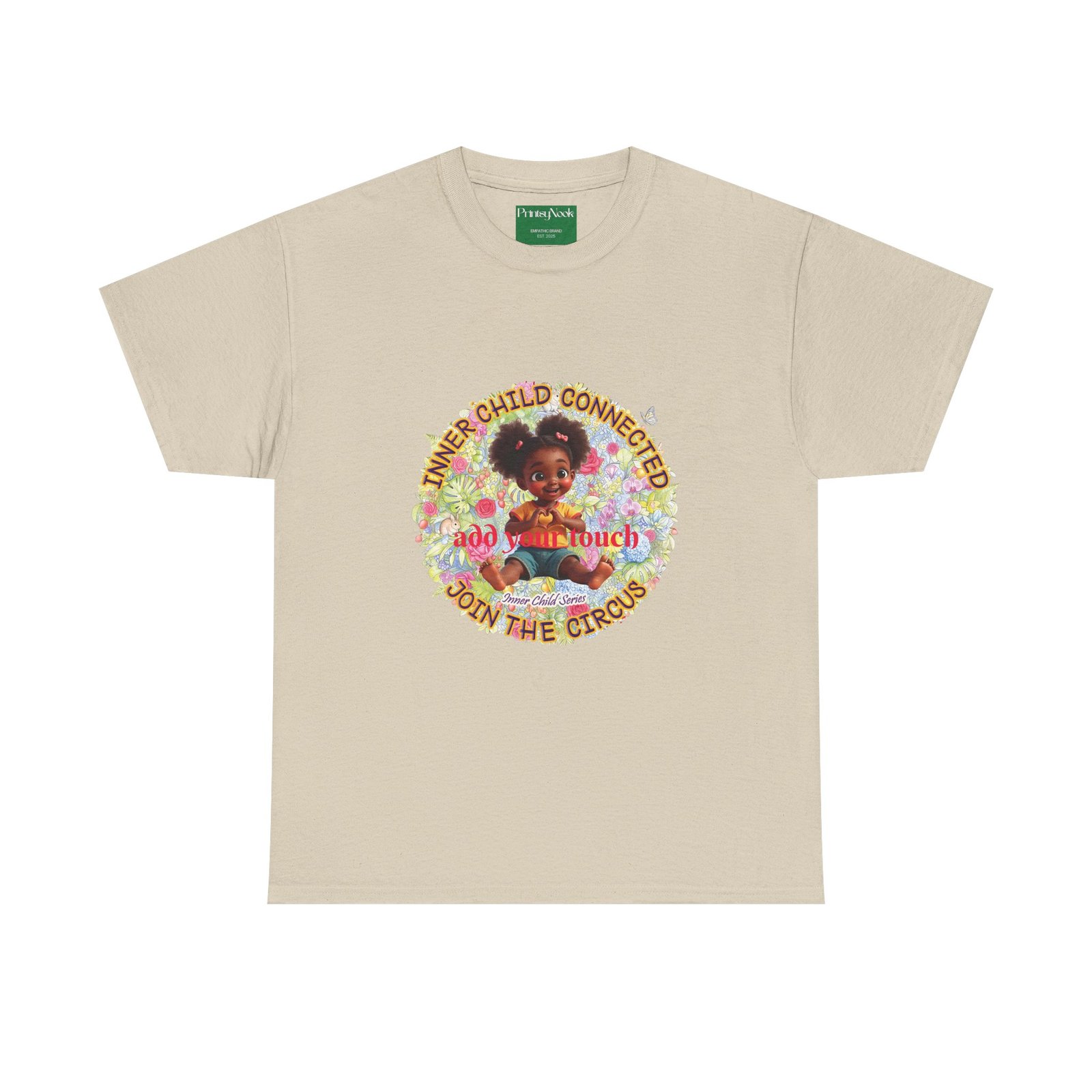 Especially for girls of all ages of Axrican decent. This cotton tee is an invitation to all girls who feel that its time to reunite with our inner innocence and wisdom and grow into a united people around the globe. The artwork — a child figure surrounded by a line of text — states the connection with her inner child and bring tenderness, innocence and wisdom into the world. The artwork can be personalized by adding your name or a few words to make it your unique expression. Just add it at Checkout into "add additional note" box. Else we leave that space on the product empty.