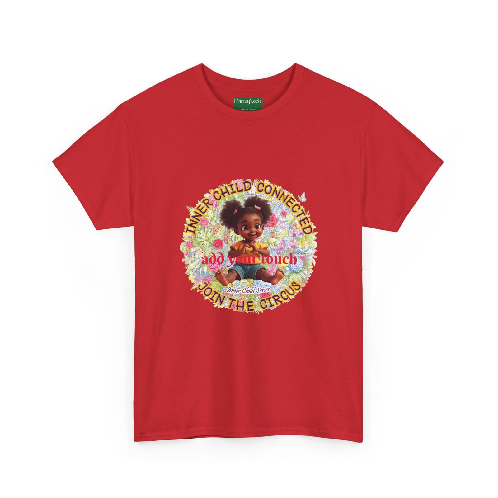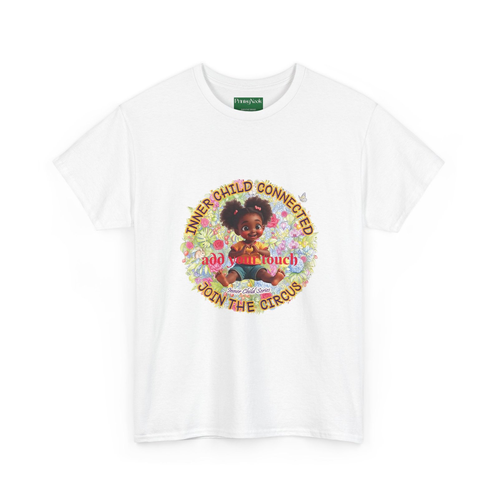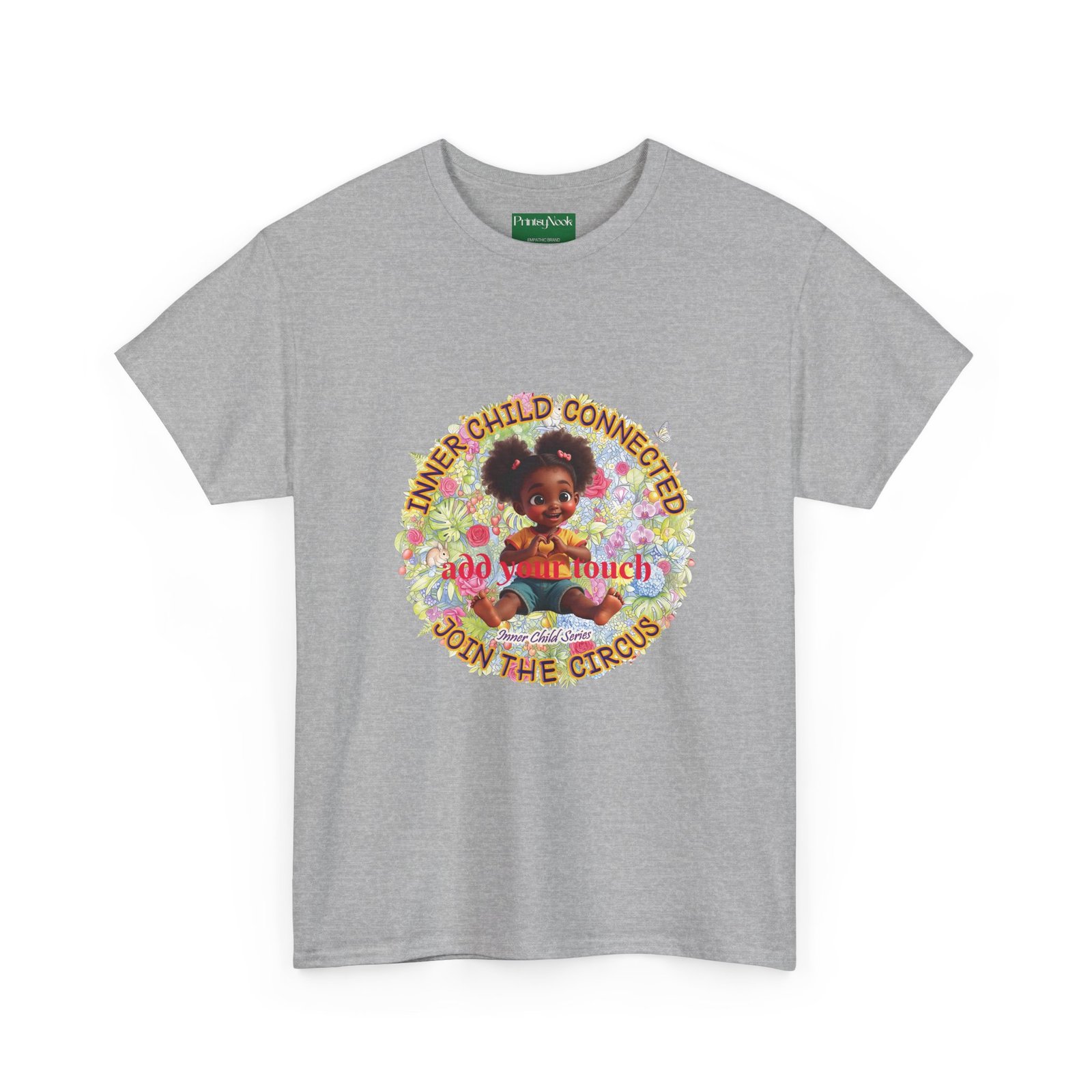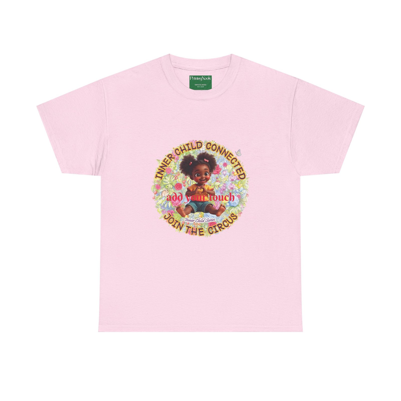 Especially for girls of all ages of Axrican decent. This cotton tee is an invitation to all girls who feel that its time to reunite with our inner innocence and wisdom and grow into a united people around the globe. The artwork — a child figure surrounded by a line of text — states the connection with her inner child and bring tenderness, innocence and wisdom into the world. The artwork can be personalized by adding your name or a few words to make it your unique expression. Just add it at Checkout into "add additional note" box. Else we leave that space on the product empty.